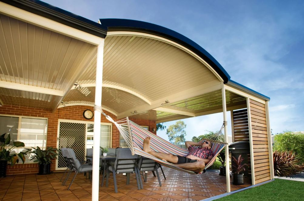 Outback Curved: The contemporary form of the Outback Curved Roof Verandah, Patio or Carport will add value and impart a sense of style and sophistication to your home. The smooth, clean lines of the curved roof form a graceful canopy over any outdoor area.